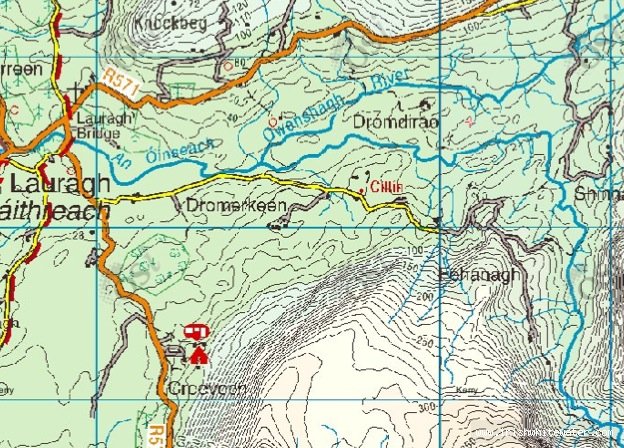 This is a river I found in South Kerry near the village of Lauragh. (South west of Kenmare) Leave Kenmare and follow signs for Castletownbere How to find: The get out is in the village at the bridge on a small side road (signposted Healy Pass). To find the get in drive towards the pass and take the first left. Keep going for 2.5 km . The road turns into a rough stone boreen but keep going until you reach a sweeping bend. Park here and carry down a really rough track to the river.(Ford here.)