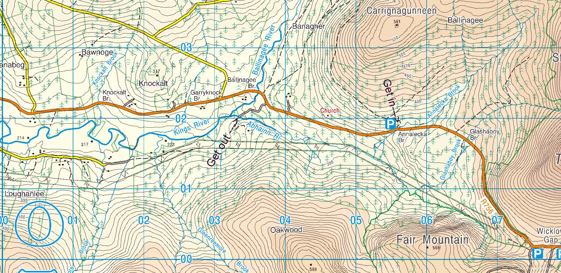 The Annalecky Brook opener is only runnable with lots of rain (it's visually obvious if it up). It's a classic Wicklow ditch with encroaching trees and narrow lines. It's also very short - a couple of hundred metres. If there's not enough water, or if you don't like the ditch, you can skip it by walking down to the confluence with the King's River proper. This is a wider river with several holes to catch the unwary and you'll need to keep an eye out for encroaching trees. It picks up in intensity as you go along, with the 'surprise' hole right at the take out.